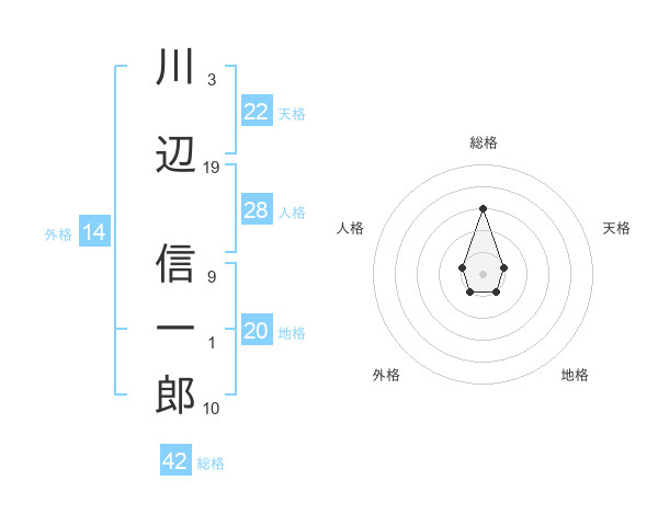 川辺 信一郎さんの総格は42画の3点
