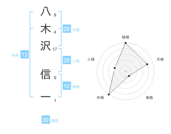 八木沢 信一さんの総格は39画の5点!