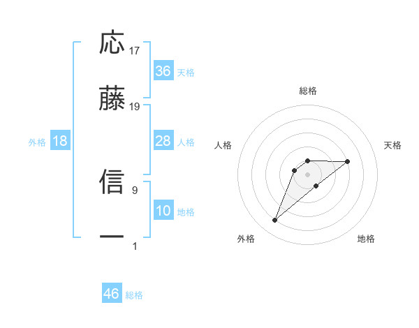 応藤 信一さんの天格は36画の3点!