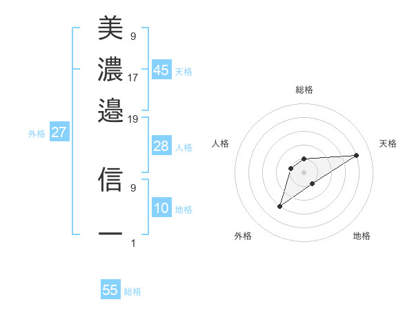 美濃邉 信一さんを姓名の画数から五運を鑑定