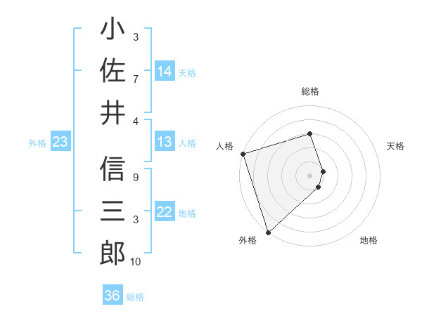 小佐井 信三郎さんの総格は36画の3点!