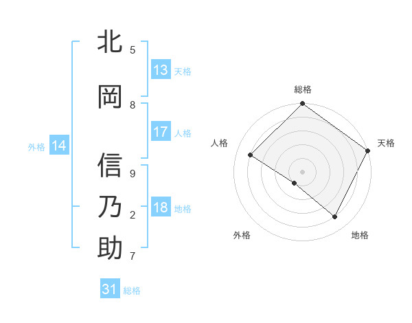 北岡 信乃助さんを姓名の画数から五運を鑑定