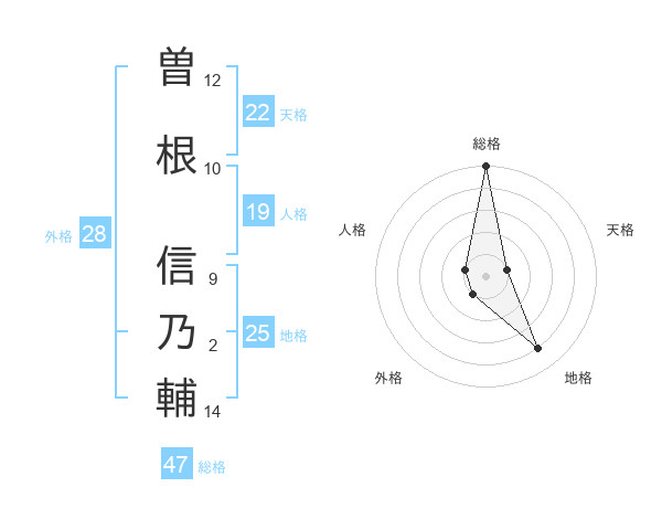 曽根 信乃輔さんを姓名の画数から五運を鑑定