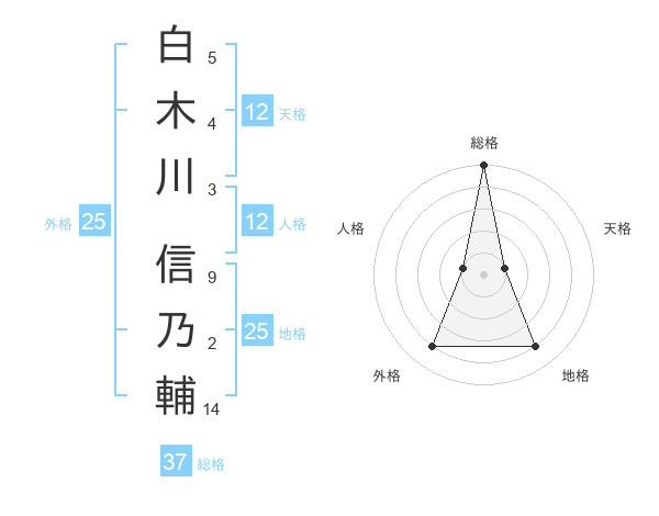 白木川 信乃輔さんの総格は37画の5点!