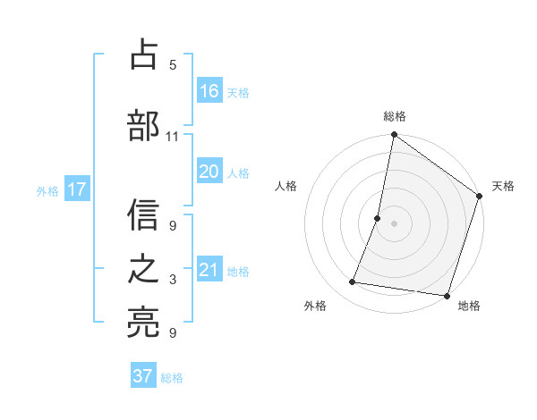 占部 信之亮さんを姓名の画数から五運を鑑定