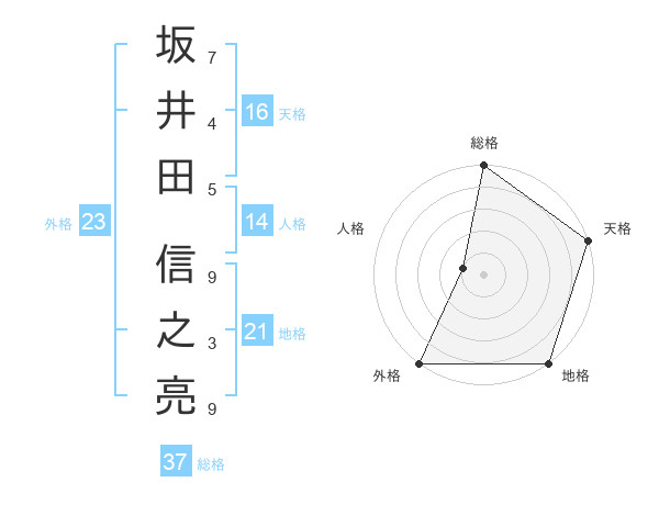 坂井田 信之亮さんを姓名の画数から五運を鑑定