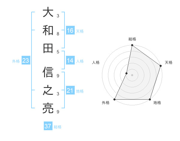 大和田 信之亮さんを姓名の画数から五運を鑑定