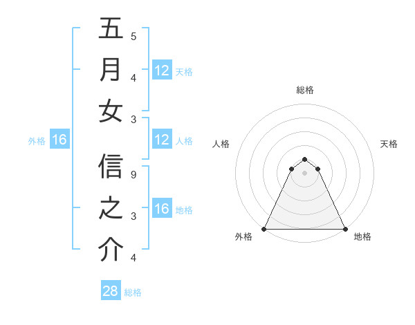 五月女 信之介さんを姓名の画数から五運を鑑定