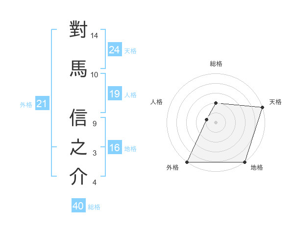 對馬 信之介さんを姓名の画数から五運を鑑定