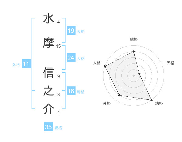 水摩 信之介さんを姓名の画数から五運を鑑定