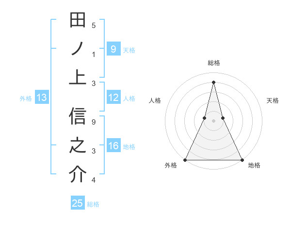 田ノ上 信之介さんを姓名の画数から五運を鑑定