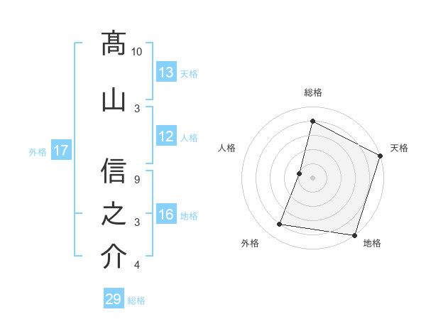 髙山 信之介さんを姓名の画数から五運を鑑定