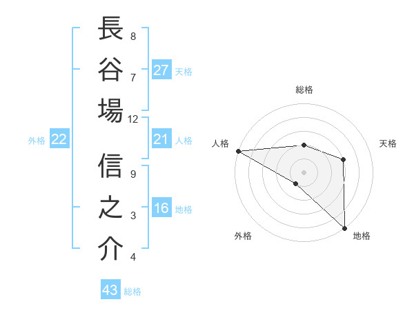 長谷場 信之介さんを姓名の画数から五運を鑑定