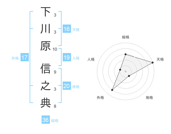 下川原 信之典さんを姓名の画数から五運を鑑定