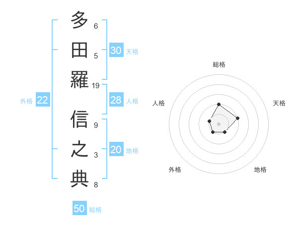 多田羅 信之典さんを姓名の画数から五運を鑑定