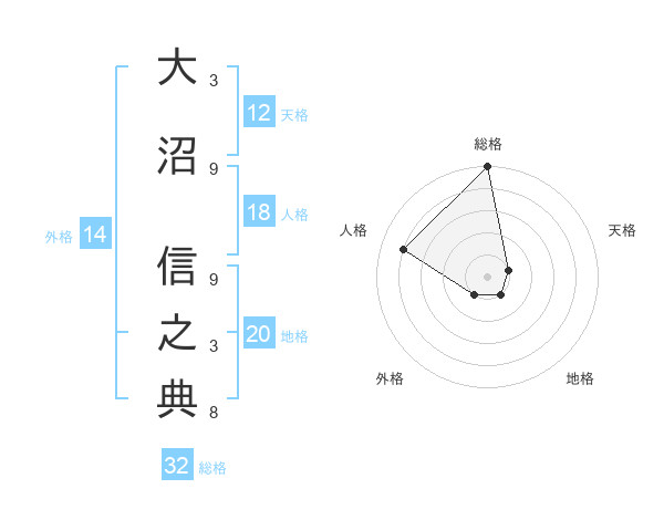 大沼 信之典さんを姓名の画数から五運を鑑定