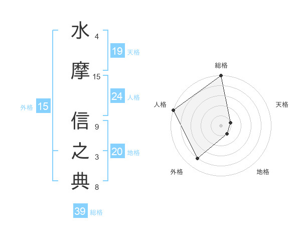 水摩 信之典さんの外格は15画の4点!
