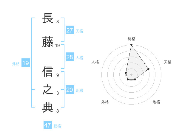 長藤 信之典さんの総格は47画の5点!