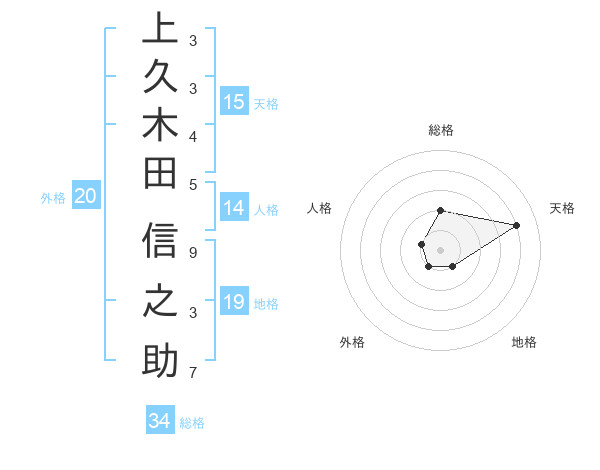 上久木田 信之助さんを姓名の画数から五運を鑑定
