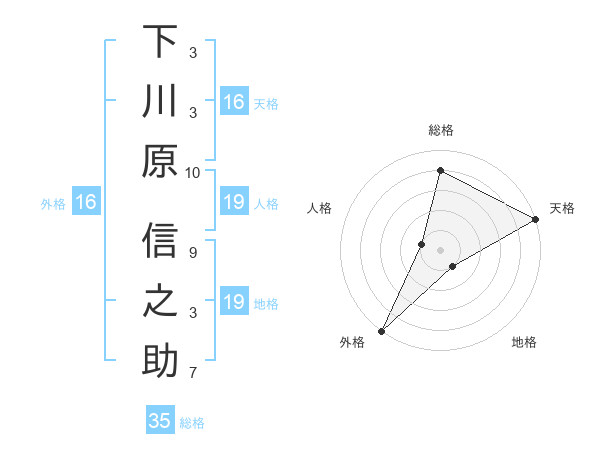下川原 信之助さんの天格は16画の5点!