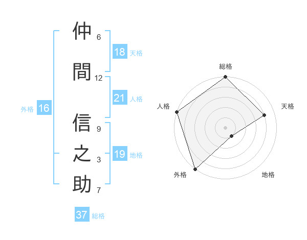 仲間 信之助さんを姓名の画数から五運を鑑定