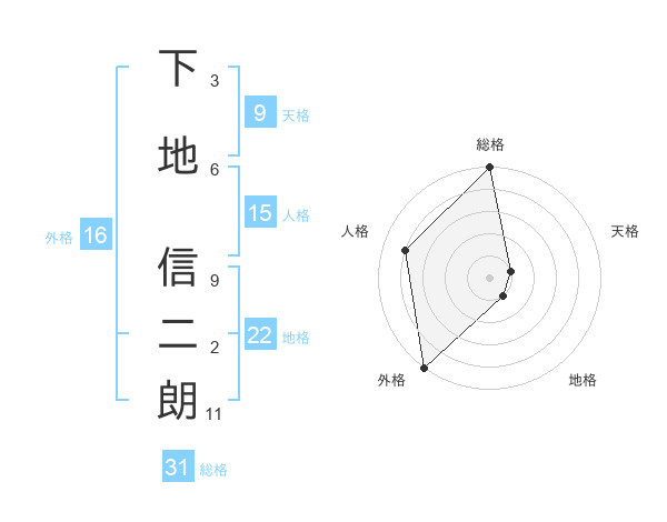 下地 信二朗さんを姓名の画数から五運を鑑定