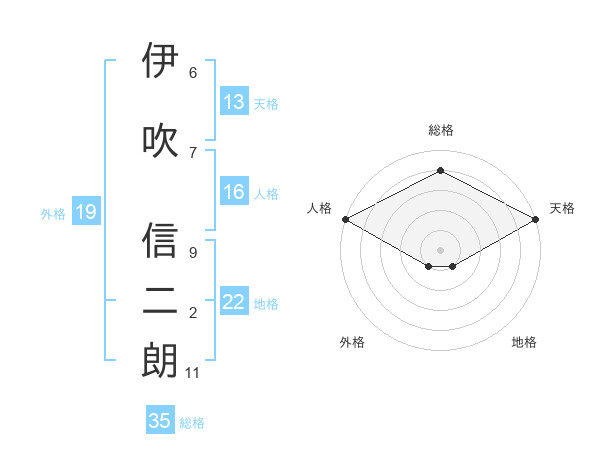 伊吹 信二朗さんの総格は35画の4点!