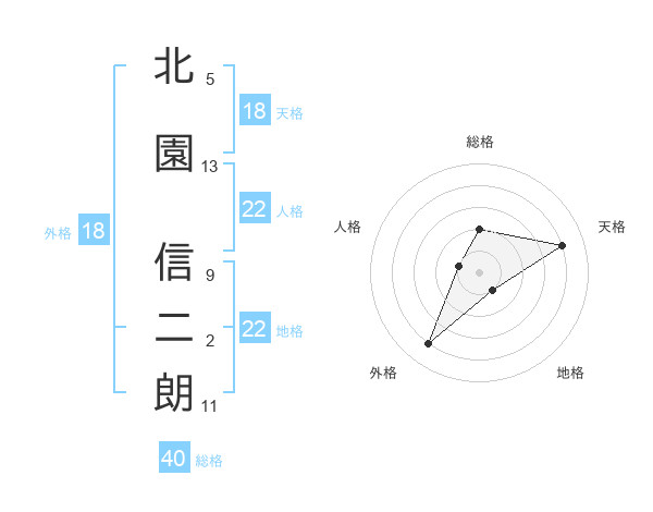 北園 信二朗さんを姓名の画数から五運を鑑定