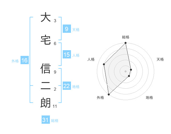 大宅 信二朗さんを姓名の画数から五運を鑑定