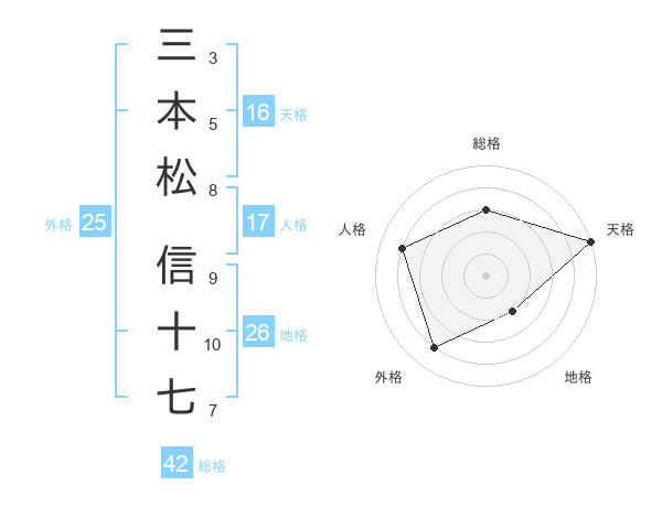 三本松 信十七さんの天格は16画の5点!