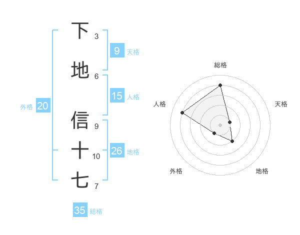 下地 信十七さんの総格は35画の4点!