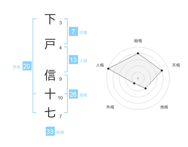 下戸 信十七さんを姓名の画数から五運を鑑定