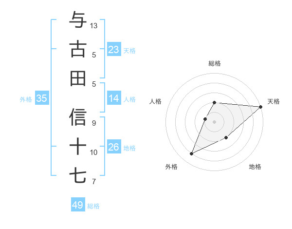与古田 信十七さんを姓名の画数から五運を鑑定