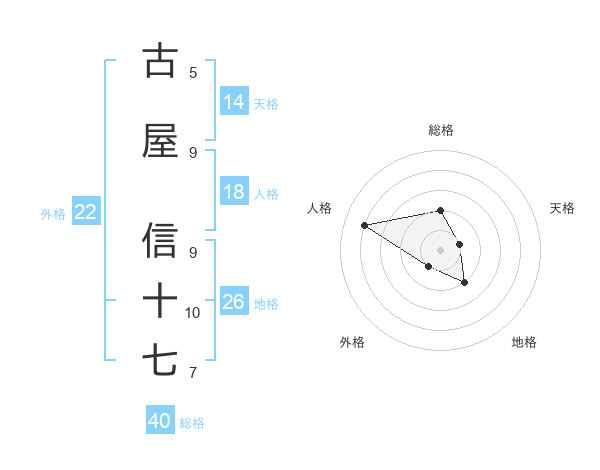 古屋 信十七さんを姓名の画数から五運を鑑定