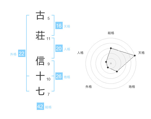 古荘 信十七さんを姓名の画数から五運を鑑定