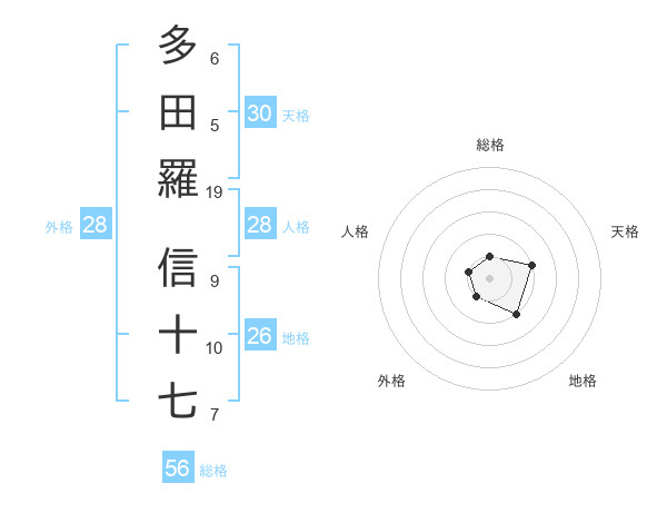 多田羅 信十七さんの総格は56画の1点!
