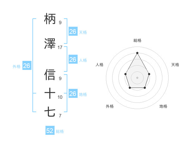柄澤 信十七さんの総格は52画の4点!