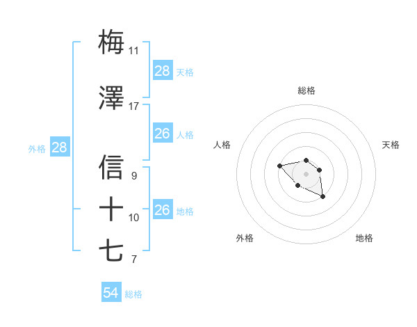 梅澤 信十七さんを姓名の画数から五運を鑑定