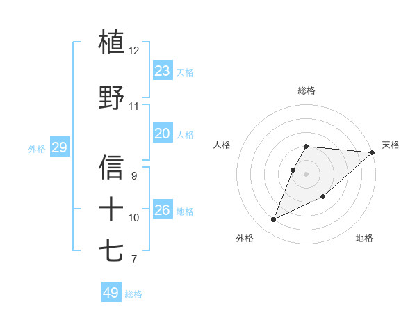 植野 信十七さんの総格は49画の2点!