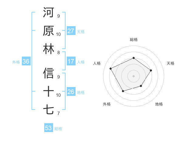 河原林 信十七さんを姓名の画数から五運を鑑定