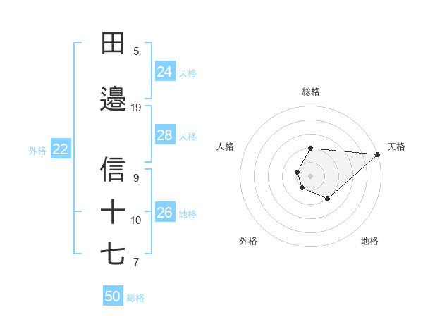 田邉 信十七さんを姓名の画数から五運を鑑定