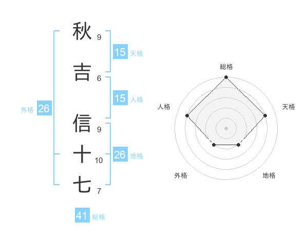 秋吉 信十七さんを姓名の画数から五運を鑑定