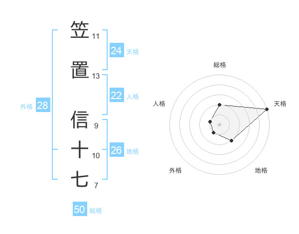 笠置 信十七さんを姓名の画数から五運を鑑定