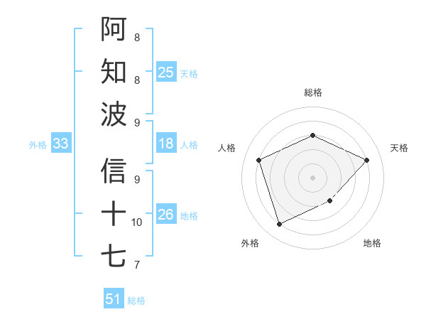 阿知波 信十七さんを姓名の画数から五運を鑑定
