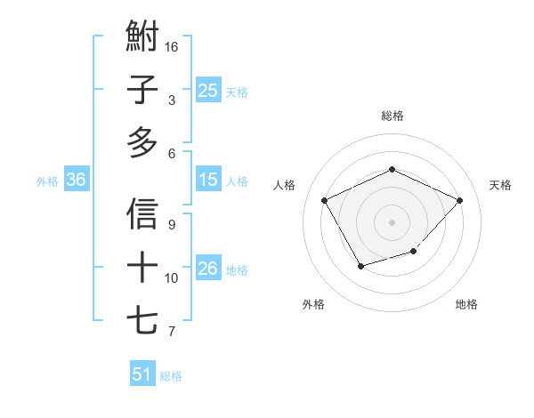 鮒子多 信十七さんの総格は51画の3点!