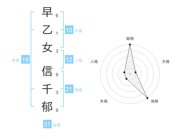 早乙女 信千郁さんを姓名の画数から五運を鑑定