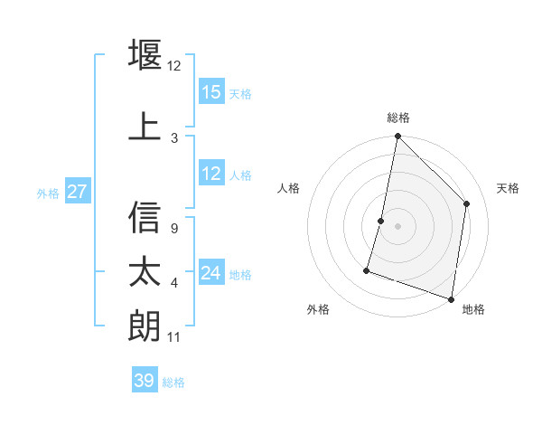 堰上 信太朗さんを姓名の画数から五運を鑑定