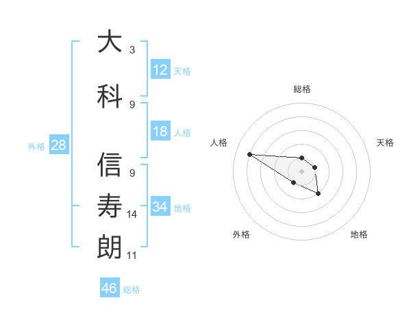 大科 信寿朗さんを姓名の画数から五運を鑑定