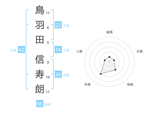 鳥羽田 信寿朗さんの総格は56画の1点!