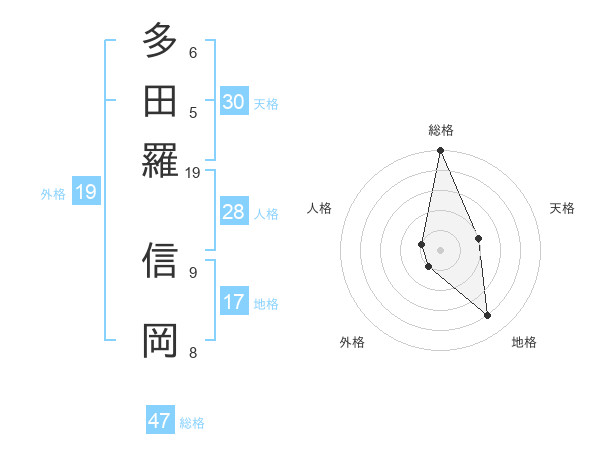 多田羅 信岡さんを姓名の画数から五運を鑑定